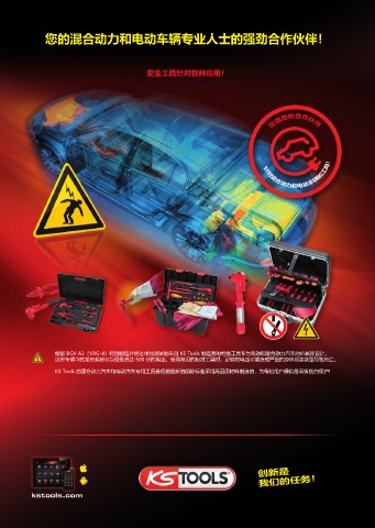 KS Tools 的混合动力汽车和电动汽车专用工具是根据最新的国际标准采用高品质材料制造的,为每位用户提供最高级别的保护!
