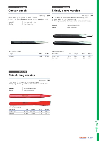 ▶ For marking drill points on metal-surfaces ▶ Flat chisel for minor renovation and dismantling work