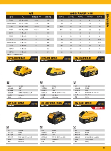 型号 V DC 电池容量 (Ah) 重量 (kg) DCB112 DCB1102 DCB115 DCB1104 DCB118