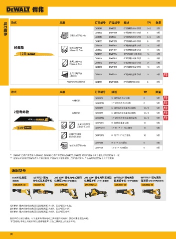 身的性能。新一代得伟马刀锯条拥有创新设计的齿形,可 1100W 往复锯 12V MAX* 锂电 20V MAX* 锂电充电式无刷 20V MAX* 锂电无刷紧凑型 60V MAX* 锂电无刷 60V MAX* 锂电无刷