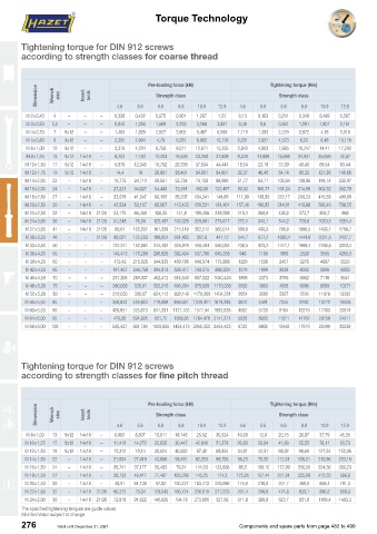 Dimension Wrench size Insert tools Pre-loading force (kN) Tightening torque (Nm)
