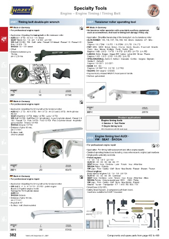 • For professional engine repair • No tensioner roller operation with unsuitable auxiliary equipment,