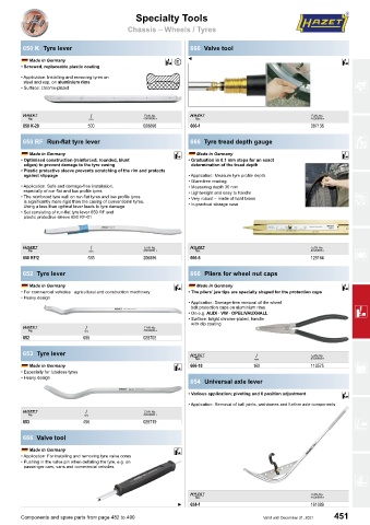 650 RF Run-flat tyre lever 666 Tyre tread depth gauge F