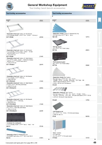 • For tool trolley i 179 N XL • Separation sheets, flat, 5-piece