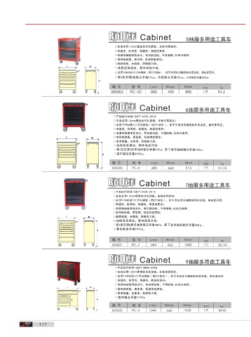 ■ ^①口口伍斤 Cabinet 6抽屉多用途工具车 编 号 RC-76S-1 Lmm Wmm Hmm Kg 总件数