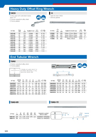 KT NO. Size mm Applied tube g KT NO. mm mm Applied wrench size g
