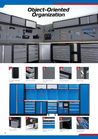 5 Flexible / adjustable Ball bearing slides Steel panel for tool Concealed handle Hidden knob
