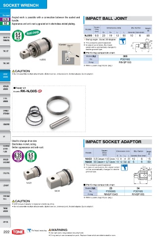 222 'PS JNQBDU XSFODIFT ● Use right size o-ring and pin securely fixed.