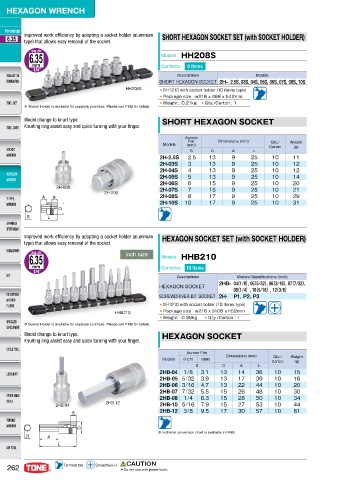 6.35 Improved work efficiency by adopting a socket holder (aluminum SHORT HEXAGON SOCKET SET (with SOCKET HOLDER)