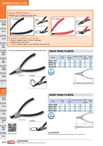 For attaching and detaching the snap ring for external application. SNAP RING PLIERS