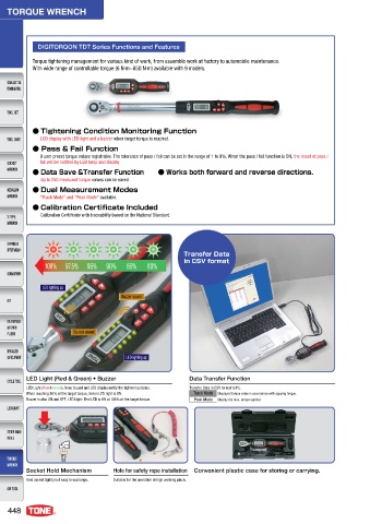 LED Light (Red & Green), Beep Sound and LED display notify the tightening status. Transfer Data in CSV format to PC.