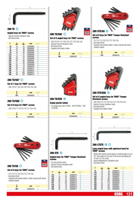 Angled keys for TORX screws 280 TX/S8C 280 STX/S8