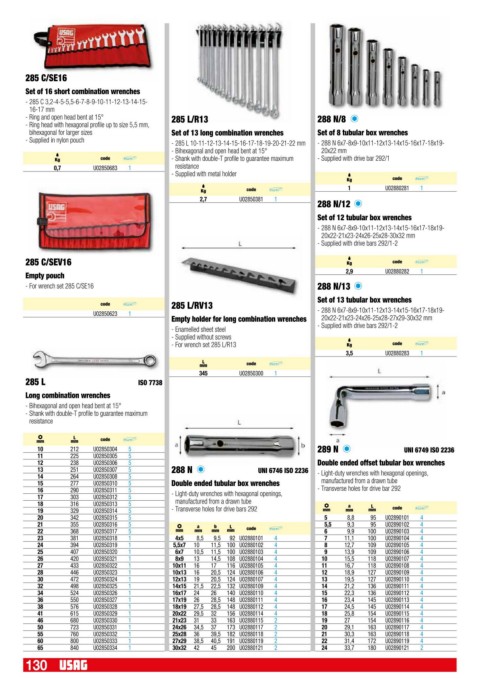- Supplied in nylon pouch - 285 L 10-11-12-13-14-15-16-17-18-19-20-21-22 mm - 288 N 6x7-8x9-10x11-12x13-14x15-16x17-18x19-