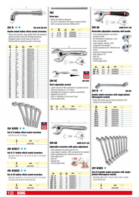 opening and bent head with bihexagonal opening 3 27÷41 350 U02920003 1 hexagonal profile