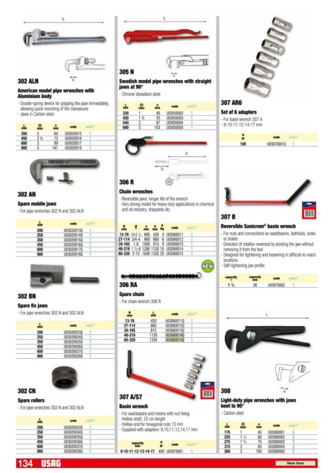 - For pipe wrenches 302 N and 302 ALN Basin wrench bent to 90°