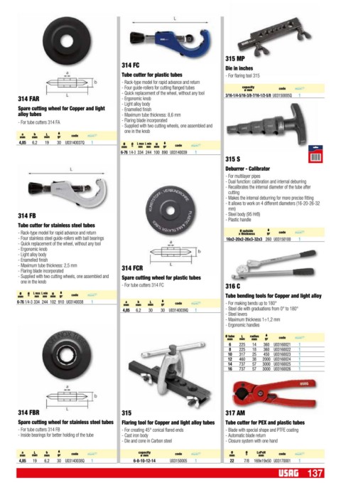 Spare cutting wheel for stainless steel tubes Flaring tool for Copper and light alloy tubes Tube cutter for PEX and plastic tubes