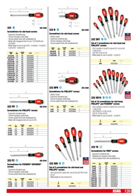 Screwdrivers for POZIDRIV -SUPADRIV 322 SH5 n°xa mm handle code Q.tà x conf. €