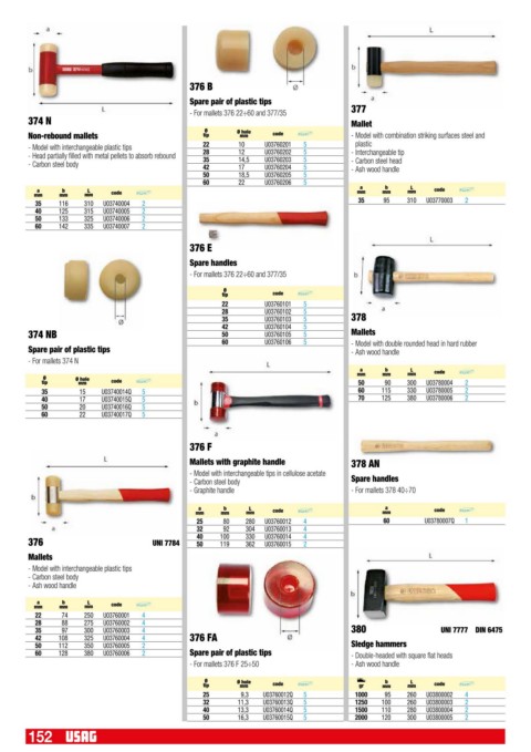 Non-rebound mallets tip mm Cod. Q.tà x conf. € - Model with combination striking surfaces steel and
