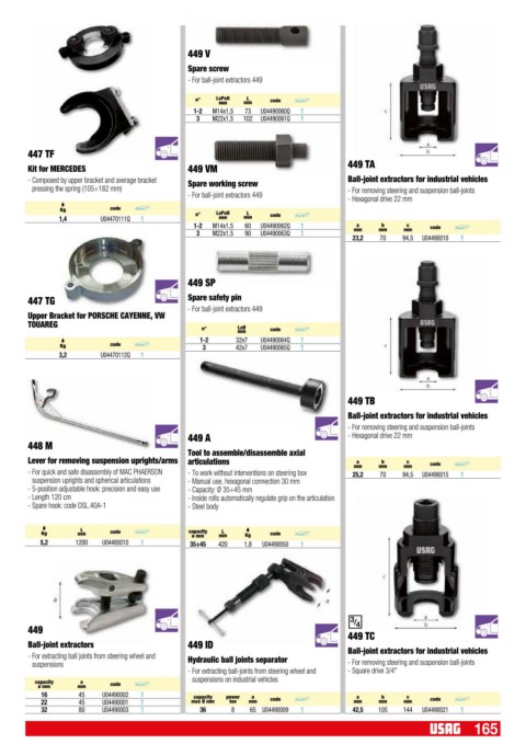 - Composed by upper bracket and average bracket Spare working screw Ball-joint extractors for industrial vehicles