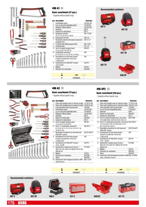 1 Combination pliers 150 AX/180 1 Lay-on slip-joint adjustable pliers 178 N/250