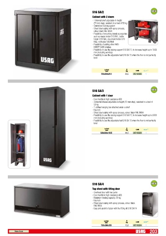 - 3 internal shelves adjustable in height (70 mm step), resistant to a load of