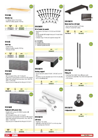 - Positioning of tools by means of hooks and CKS supports - Possibility to use the adjustable feet 516 SA 15 when the on the worktop