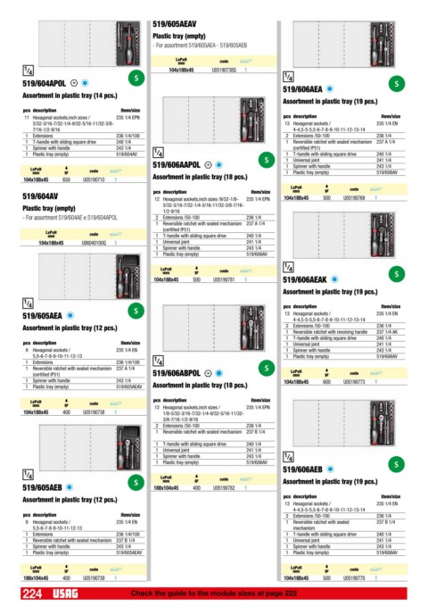 1 Plastic tray (empty) 519/604AV 1 T-handle with sliding square drive 240 1/4