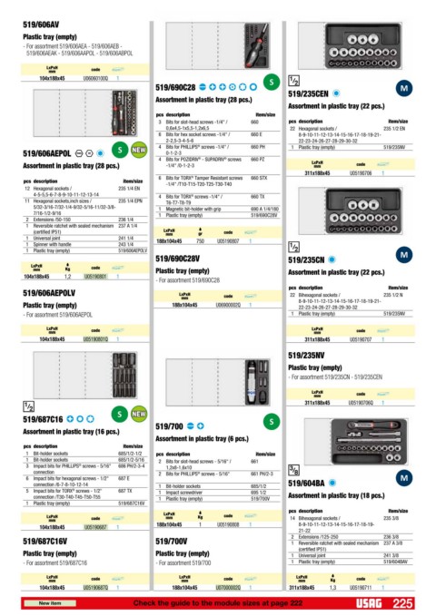 - For assortment 519/687C16 - For assortment 519/700 1 Plastic tray (empty) 519/604BAV