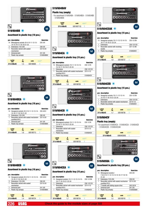 1 Universal joint 241 3/8 13 Bihexagonal sockets /10-11-12-13-14- 235 1/2 N Plastic tray (empty)