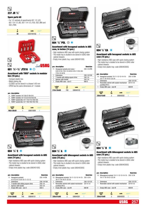 - The inside tray is studied to be stored in USAG roller Assortment with hexagonal sockets in ABS