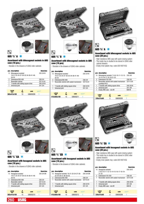 Assortment with bihexagonal sockets in ABS Assortment with bihexagonal sockets in ABS - High resistance ABS case with quick closing system