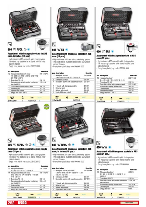 case, in inches (18 pcs.) case (19 pcs.) Assortment with hexagonal sockets in ABS