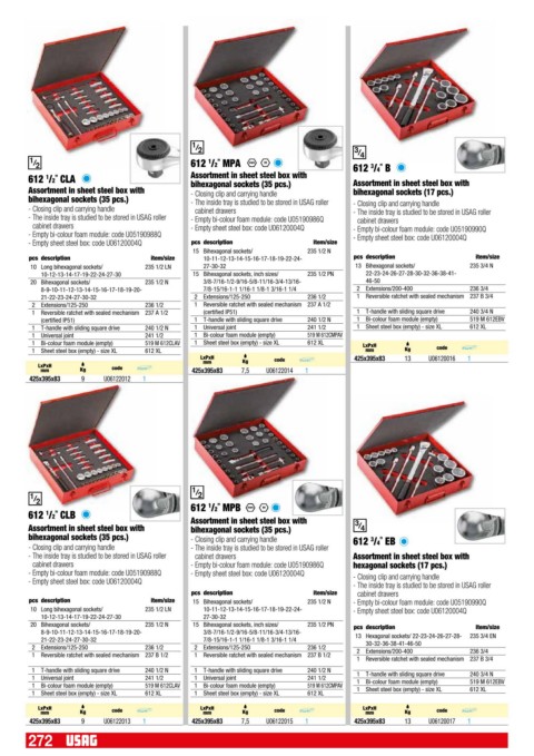 1 Bi-colour foam module (empty) 519 M 612CLAV 1 Bi-colour foam module (empty) 519 M 612CMPAV 1 Sheet steel box (empty) - size XL 612 XL