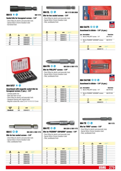 7 66 U06640004 5 5 70 U06640519 5 2 Bits for POZIDRIV -SUPADRIV screws - 664 PZ/75