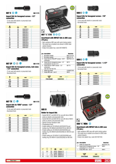 n° L code Q.tà x conf. € - Socket 685 B/1 and 685 B/3 for use with bits of 688 E
