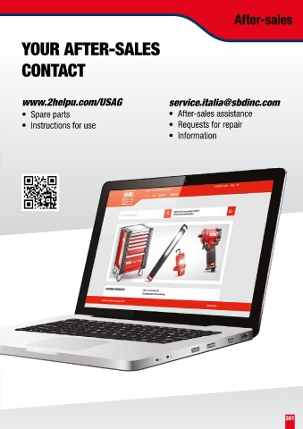 After-sales YOUR AFTER-SALES CONTACT www.2helpu.com/USAG service.italia@sbdinc.com • Spare parts • After-sales assistance • Instructions for use • Requests for repair • Information 301