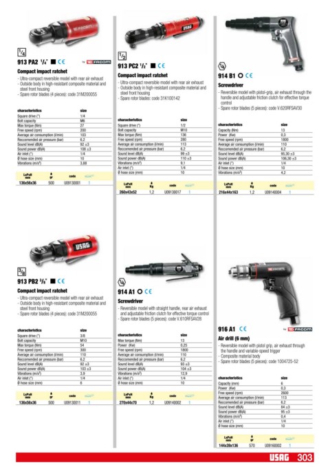 - Ultra-compact reversible model with rear air exhaust Compact impact ratchet 914 B1