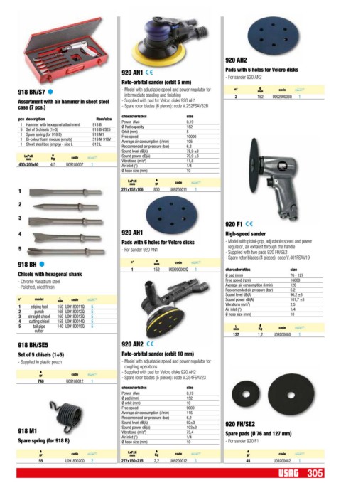 Assortment with air hammer in sheet steel - Supplied with pad for Velcro disks 920 AH1