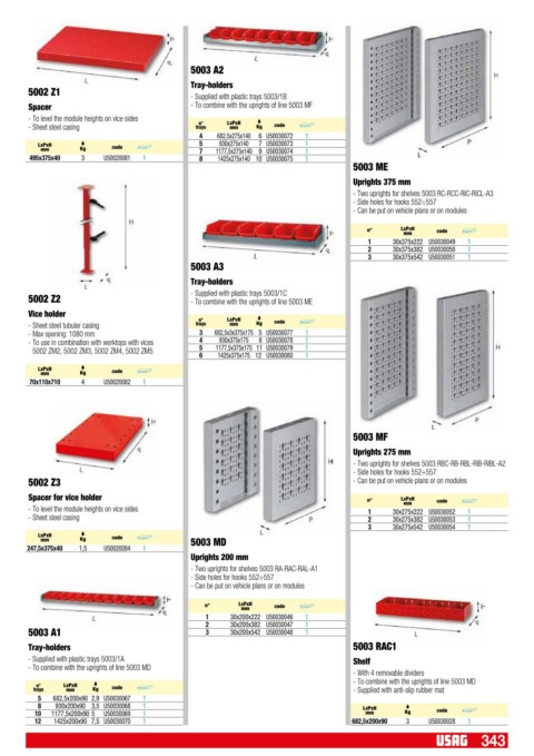 n° LxPxH code Q.tà x conf. € - To combine with the uprights of line 5003 MD
