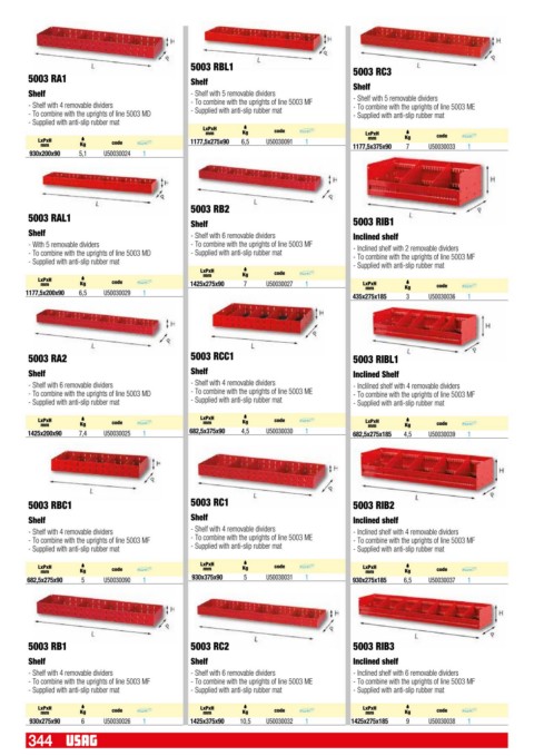 - Shelf with 4 removable dividers - To combine with the uprights of line 5003 MF - To combine with the uprights of line 5003 ME