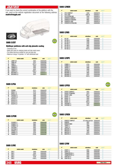 If you want to check the correct combination of the platform with the n° vehicle model wheelbase code Q.tà x conf. €