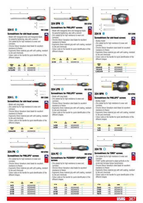 324 L ISO 2380 - Model with long blade Screwdrivers for PHILLIPS screws