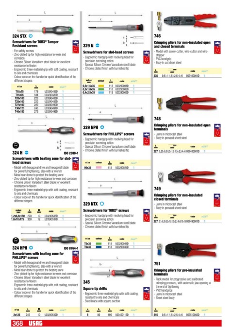 Screwdrivers for TORX Tamper Crimping pliers for non-insulated open
