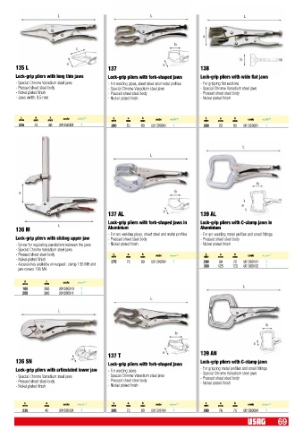 136 SN Lock-grip pliers with fork-shaped jaws Lock-grip pliers with C-clamp jaws