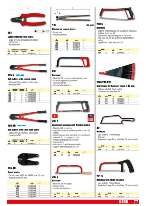 - For bolt cutters 196 N and 196 NR (size 350 mm) 201 S