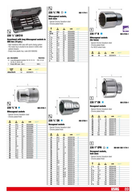 10 Long bihexagonal sockets /10-12-13-14- 235 1/2 LN 2 68,5 75 U02353080 1