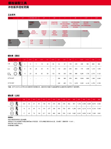 *注意 : ASTM A325 及 ASTM A490 螺栓用于结构钢应用。扭矩和张力值基于在超出螺母转动法螺栓保证载荷情况下扭转螺母。